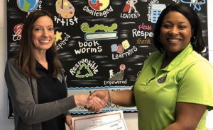 Melda McCoy with Oaks Road Academy won a Spring Cycle PIE Grant for “Count on Me!” for $1,499.57. Pictured is Dr. Eleanor Patrick, principal at Oaks Road Academy presenting her with the check. This grant will allow students to gather each morning […]