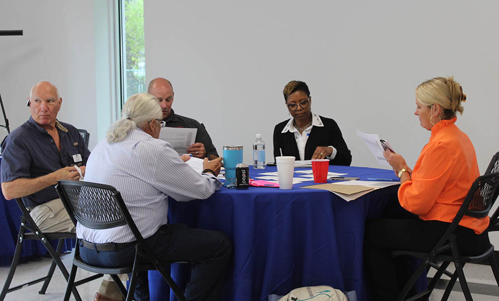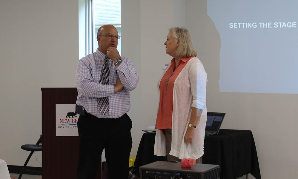 The New Bern Board of Aldermen held a strategic planning work session on Aug. 30 at the Pleasant Hill Community Center. Lydian Altman, UNC School of Government faculty member, facilitated the meeting with Mariah Canup, graduate assistant.