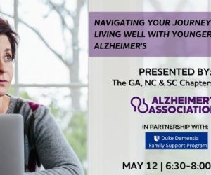 The Alzheimer’s Association chapters in North Carolina, along with the Duke Dementia Family Support Program, announce a special program, “Navigating Your Journey: Living Well with Younger-onset Alzheimer’s,” taking place statewide on Thursday, May 12. Alzheimer’s disease is considered to be younger-onset Alzheimer’s […]