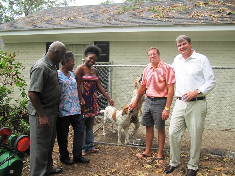 This morning, the great pyrenees and blue heeler mixed dogs (Lisa and Rebel) were re-united with their owners, Christine, Valencia, and Paul Fonville!